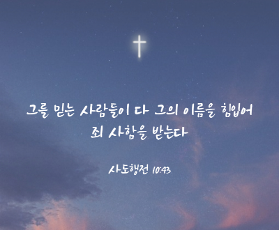 사도행전 10:43 그를 믿는 사람들이 다 그의 이름을 힘입어 죄사함을 받는다 (그=예수님)
