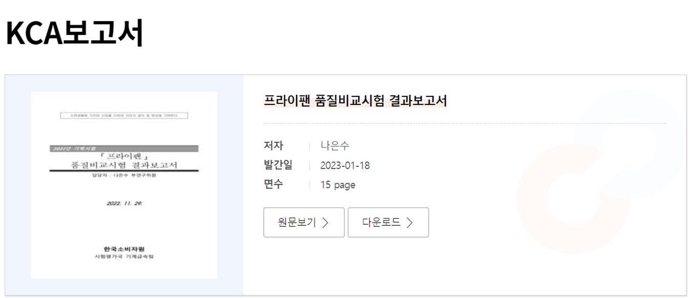 ☞한국소비자원 프라이팬 품질비교시험 결과보고서 바로가기